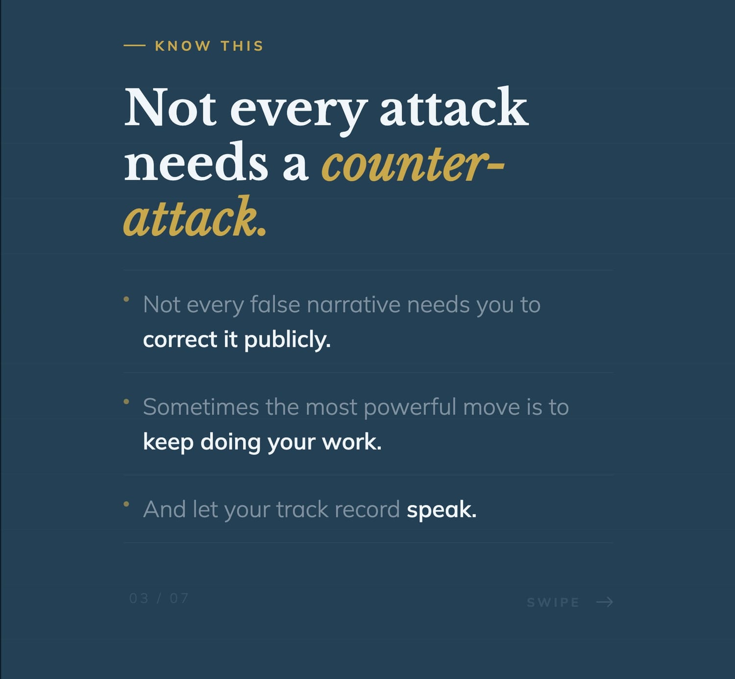 Swipe to the next post on how to respond when your reputation is under attack. → 👇